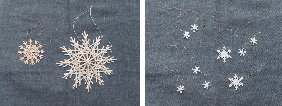 Hand-crafted split-willow star, Rosie Farey/Porcelain snowflake, Vicky Hageman