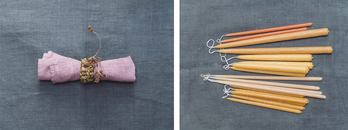Bullrush napkin ring, Felicity Irons/Hand-dipped, British beeswax candles