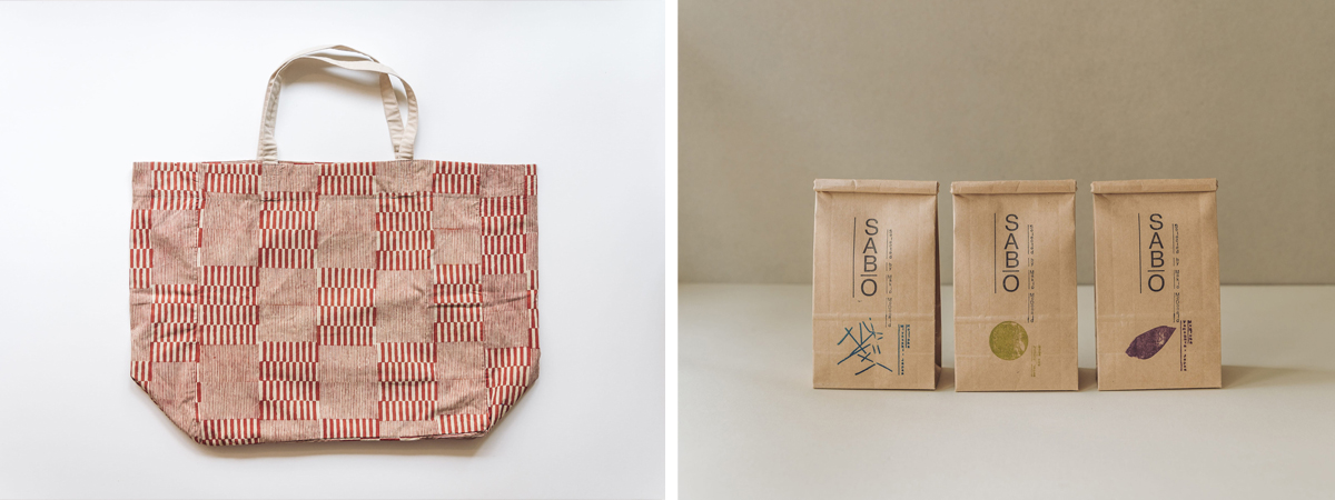 Geometric madder tote, Louisa Loakes/Sabo Japanese teas, Makio McDonald