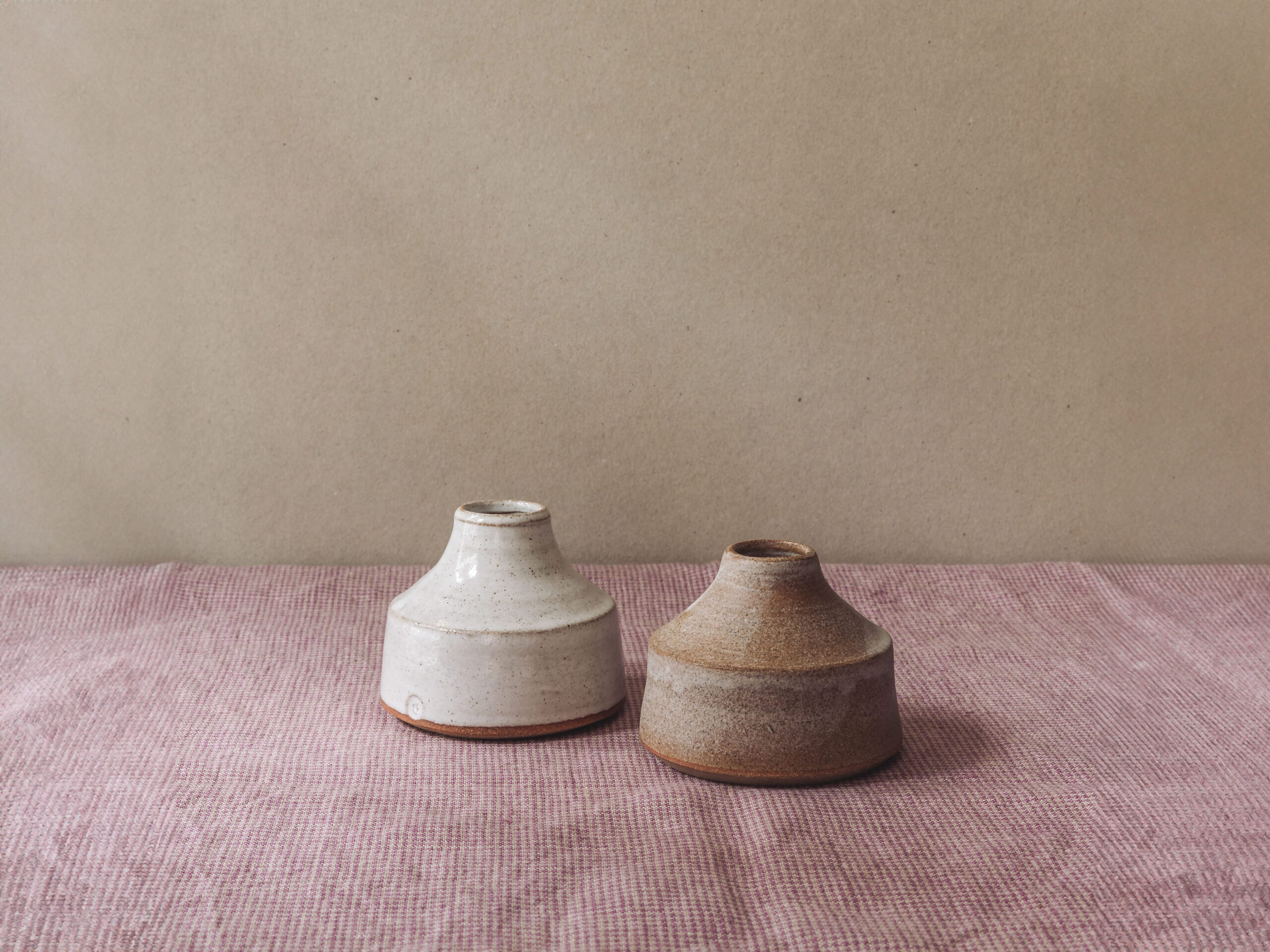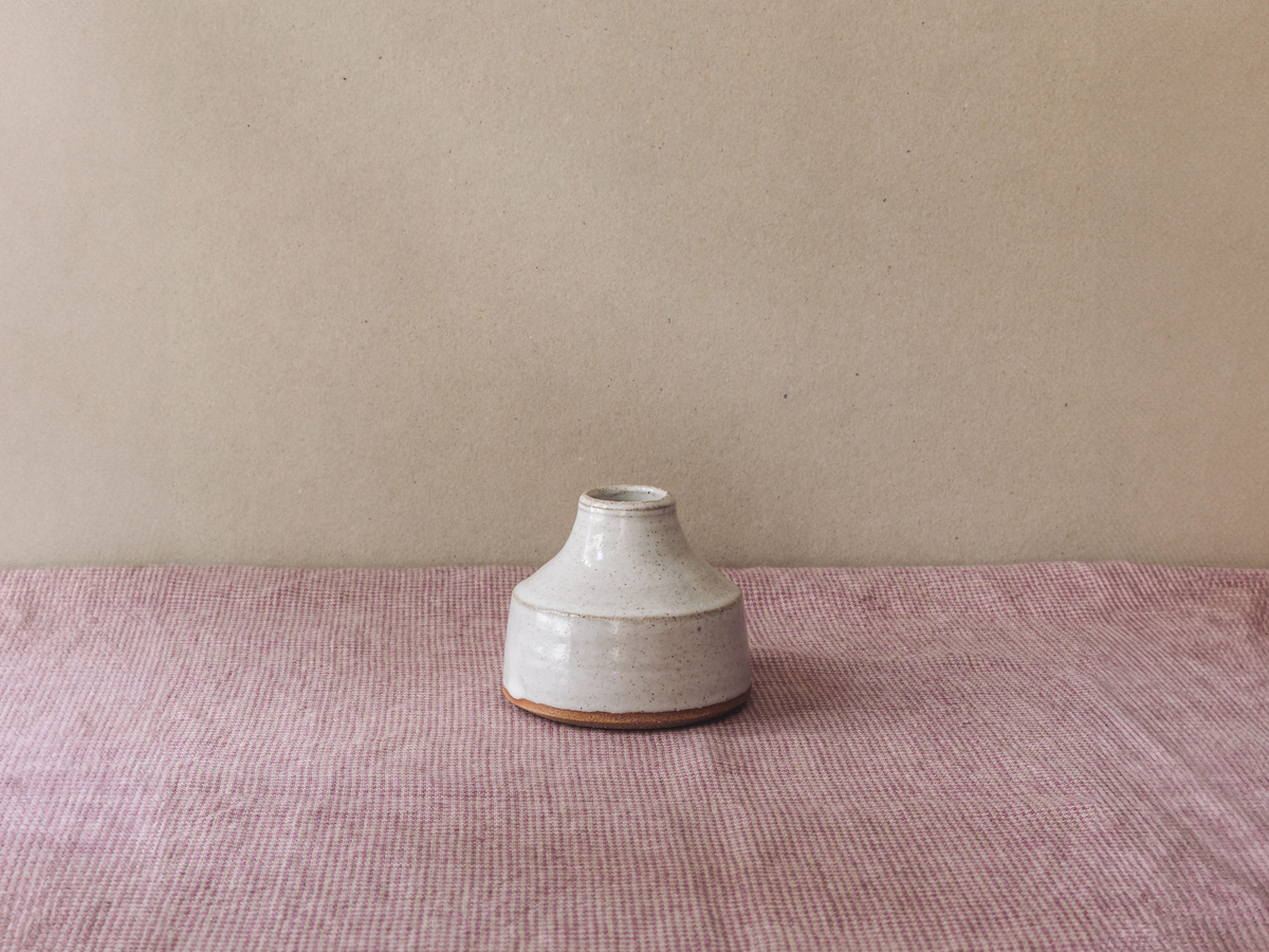 Hand-thrown glazed stoneware bud vase or ink well. Diameter of base 75mm, height 70mm. Made in Kent.