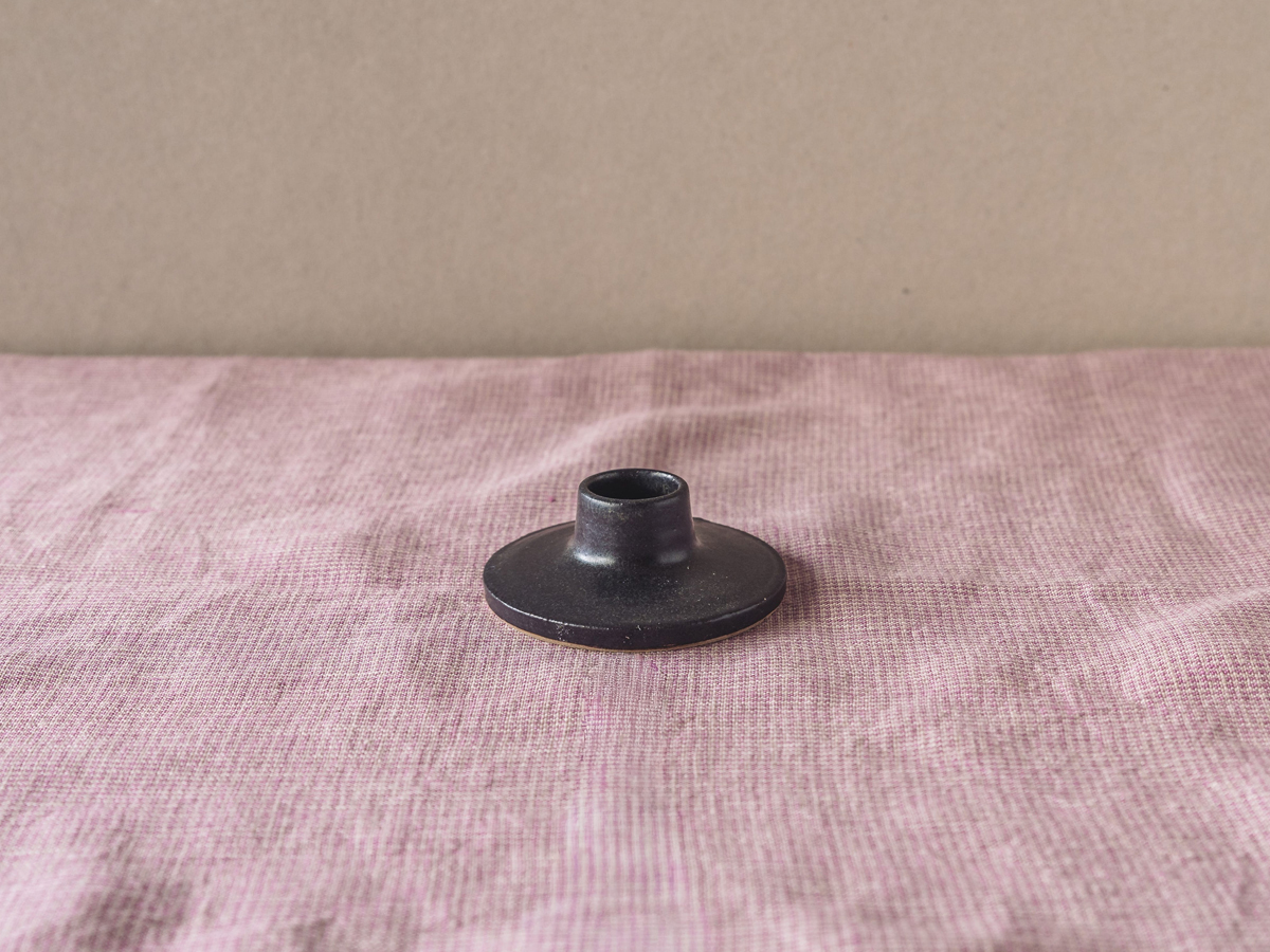 Hand-thrown candleholder, approximately 90mm wide x 30mm high, made in Kent.