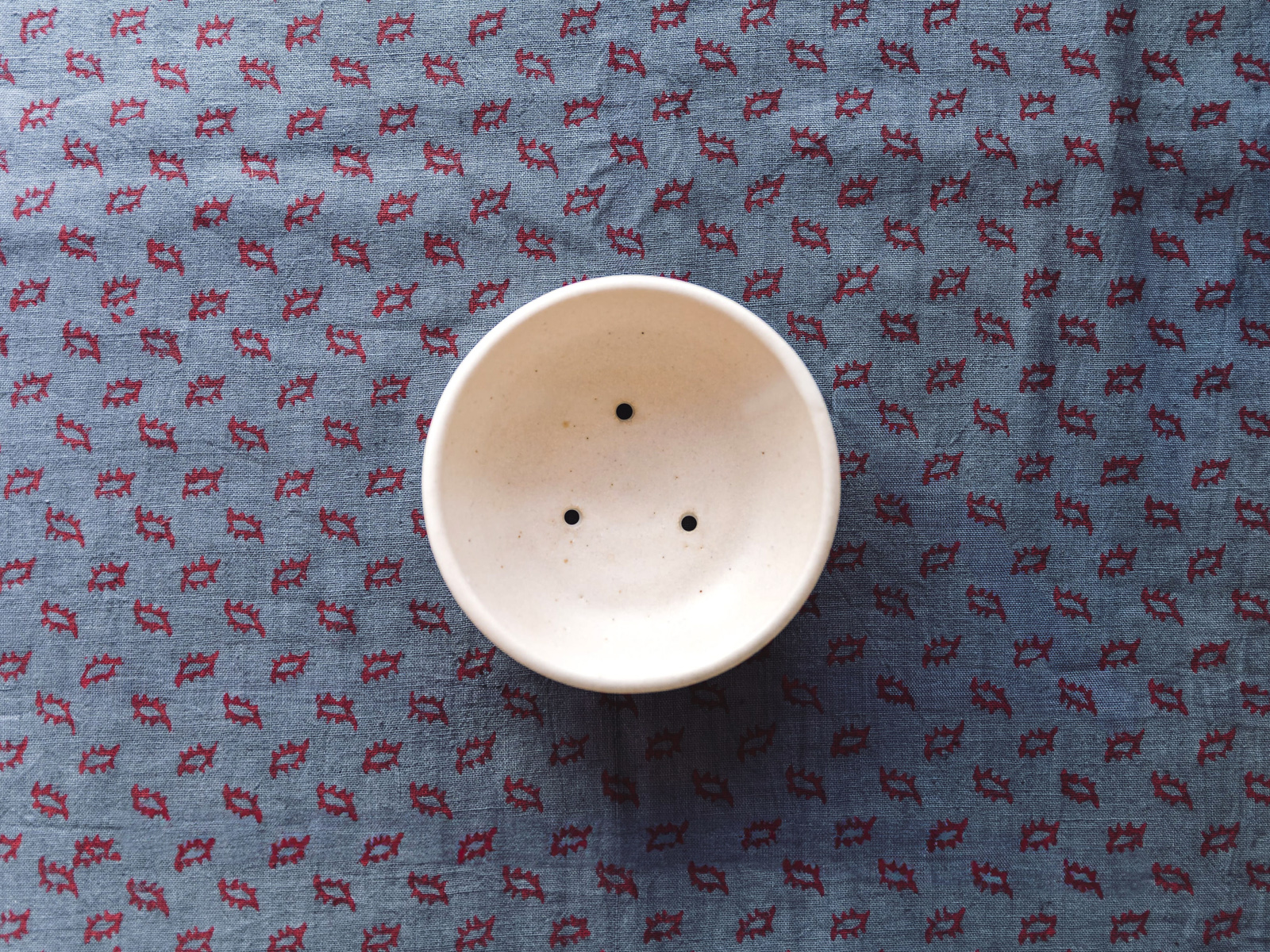 This beautiful matte oat coloured glaze used by Gillian for this collection has a distinct crazed effect, which is more visible when the piece is heated or washed in hot water. Please note that the clay is completely impervious and fired to 1265°C. This is just a decorative effect.