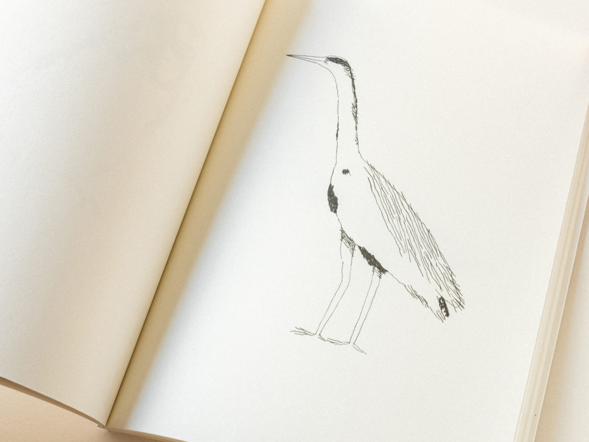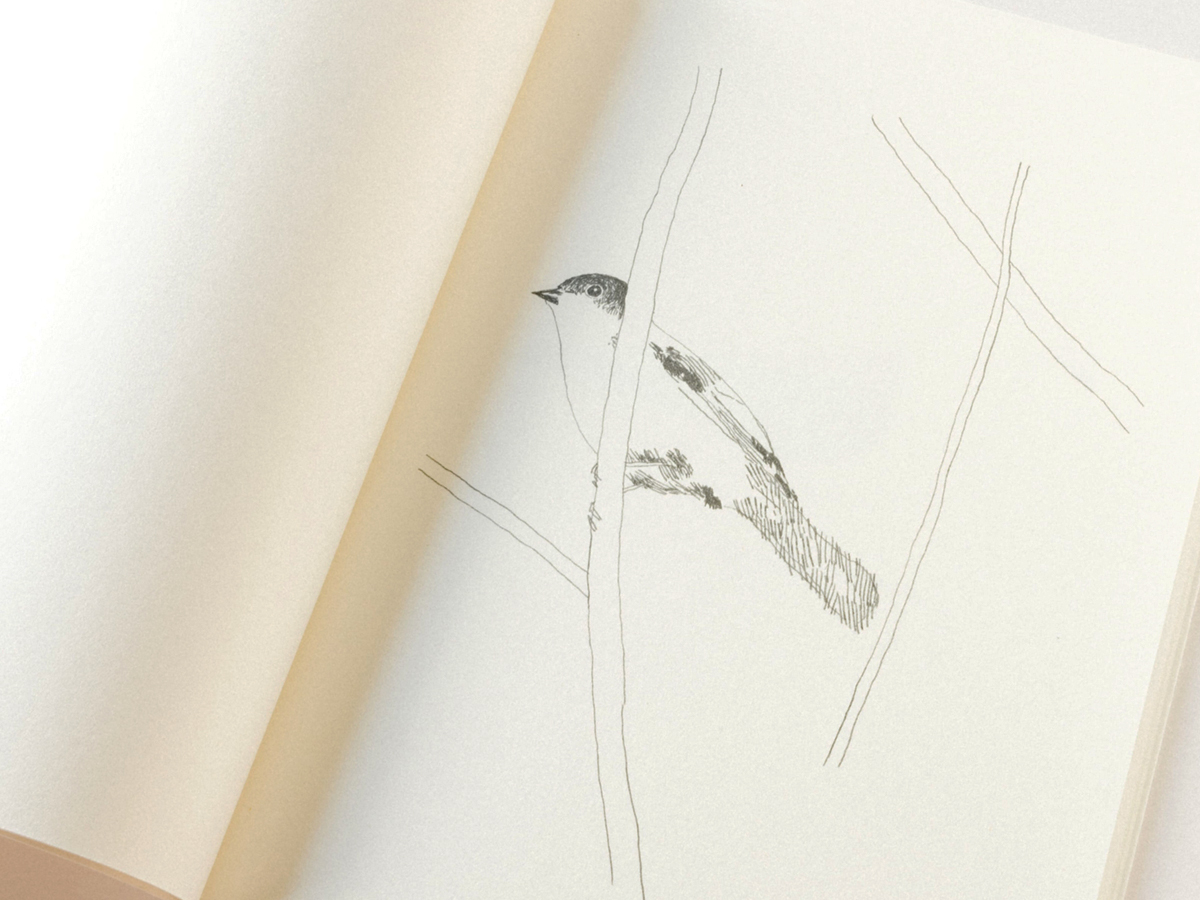 In this collection of drawings a different avian species appears on each page. The sketches executed in dark pencil are true to nature but minimalist, consisting only of simple lines, cross-hatching, and shading. They were drawn in 2020, but inspired by a visit the artist made to a second-hand bookstore in Kamakura, nearby Tokyo, in early summer 2019. Translations of the birds’ names are purposefully not included, because “some things are more than their names.”