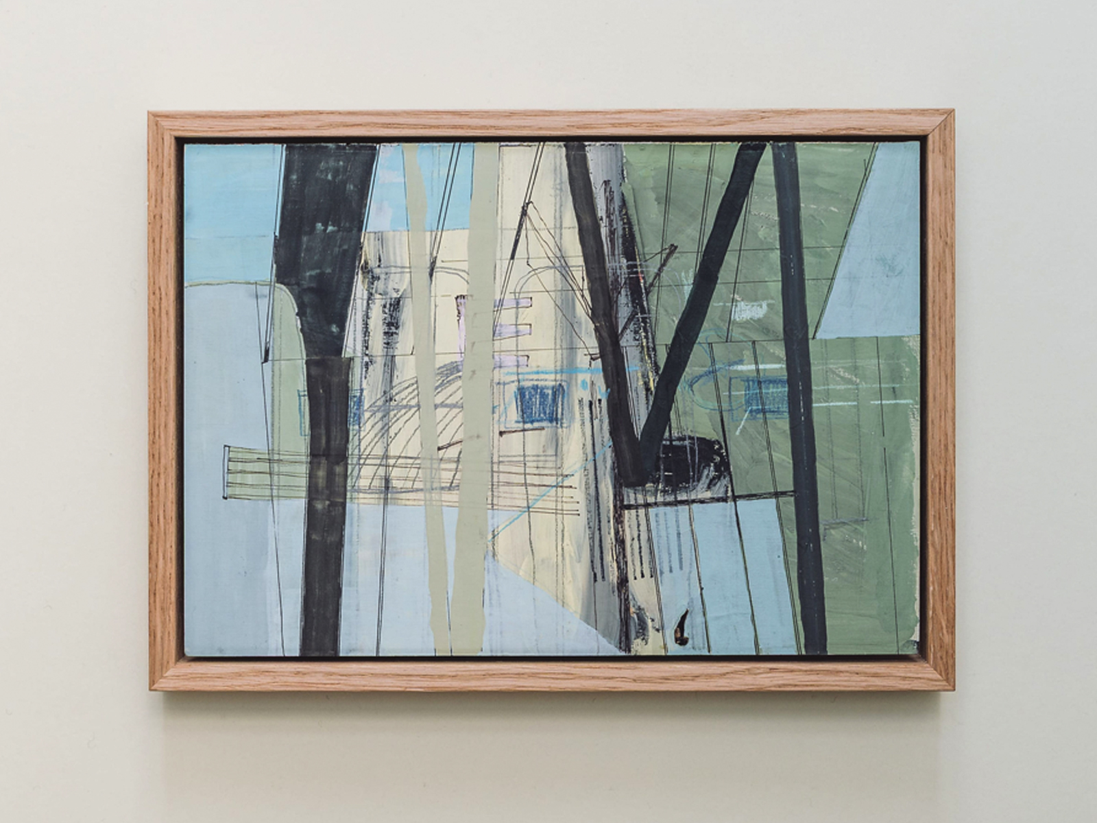 Original artwork in gouache and coloured pencil, presented in an oak tray frame. Artwork and frame measure 320mm wide, 230mm high and 25mm deep.