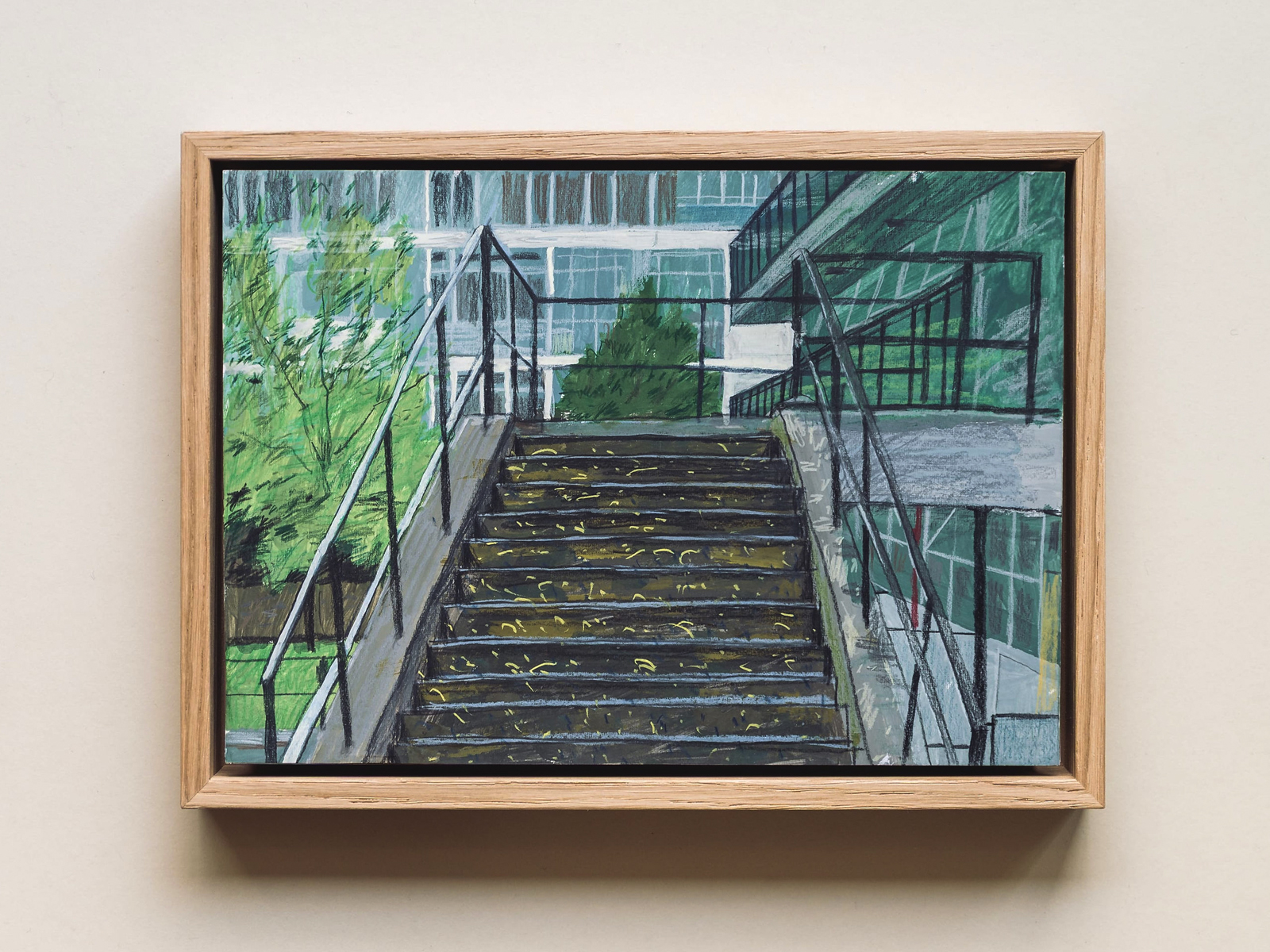 This drawing is one of a series by the artist exploring Churchill Gardens in Pimlico; a housing estate built in 1947 as part of the Abercrombie Plan for London recreating housing after the bombing blitz of World War II. Churchill Gardens housed around 5000 people, and was the only tabled project from the Plan that was finally realised. It was a workable solution to a modern problem – relatively affordable housing.