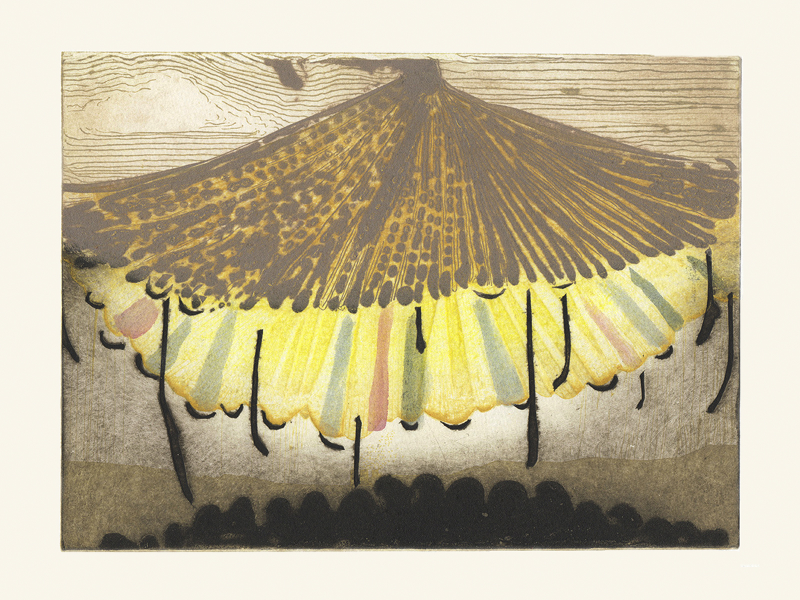 Collagraph and hand colour on Somerset 300gsm paper. Edition of 25. Numbered, titled and signed in pencil on the paper border below the image. Paper size 400mm wide x 330mm high, image size 240mm wide x 180mm high.