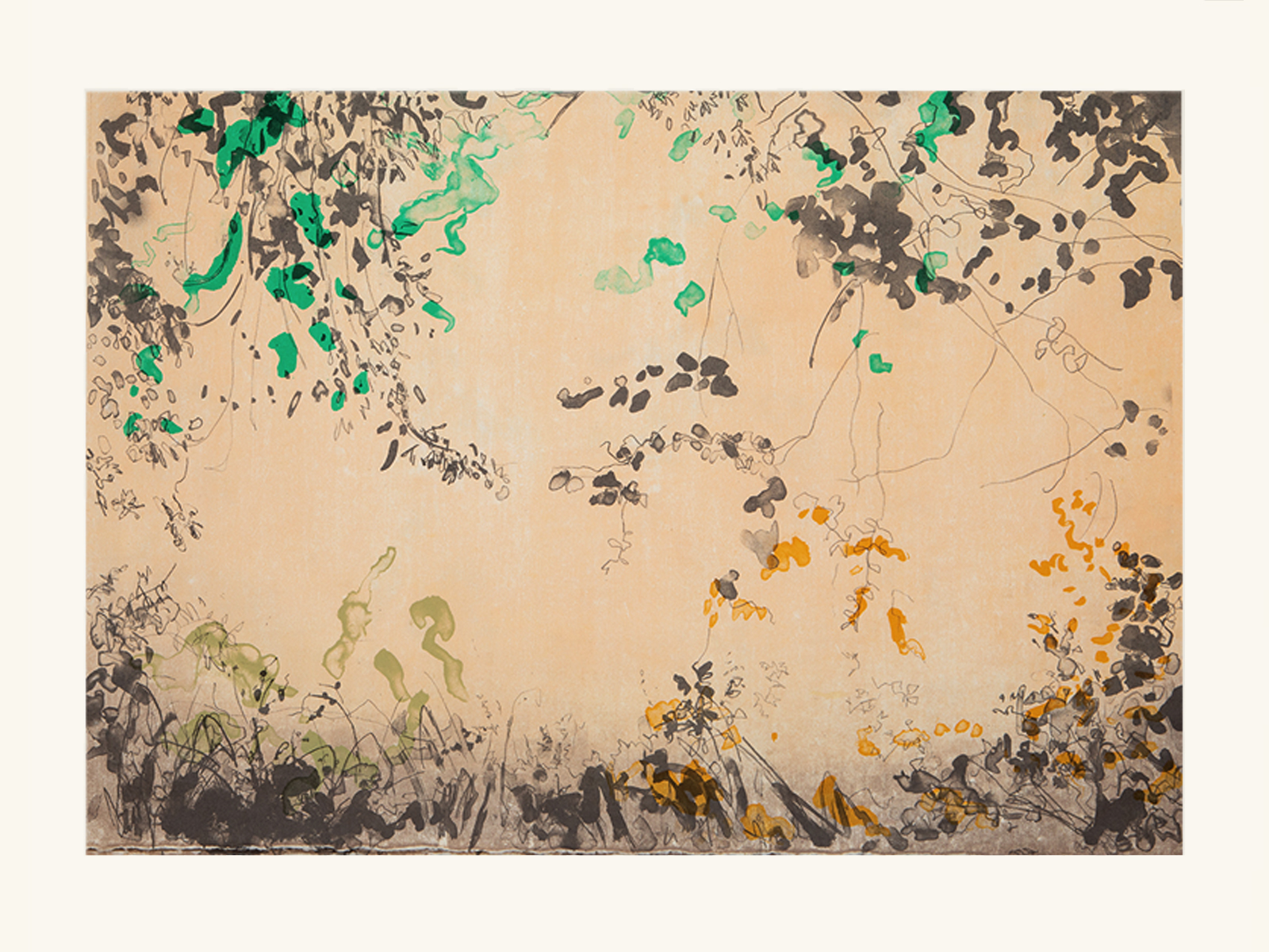 Edge-to-edge woodcut and screen print on mould-made Bunkoshi 70gsm Japanese paper. Signed, limited edition of 32, size 800mm x 550mm.