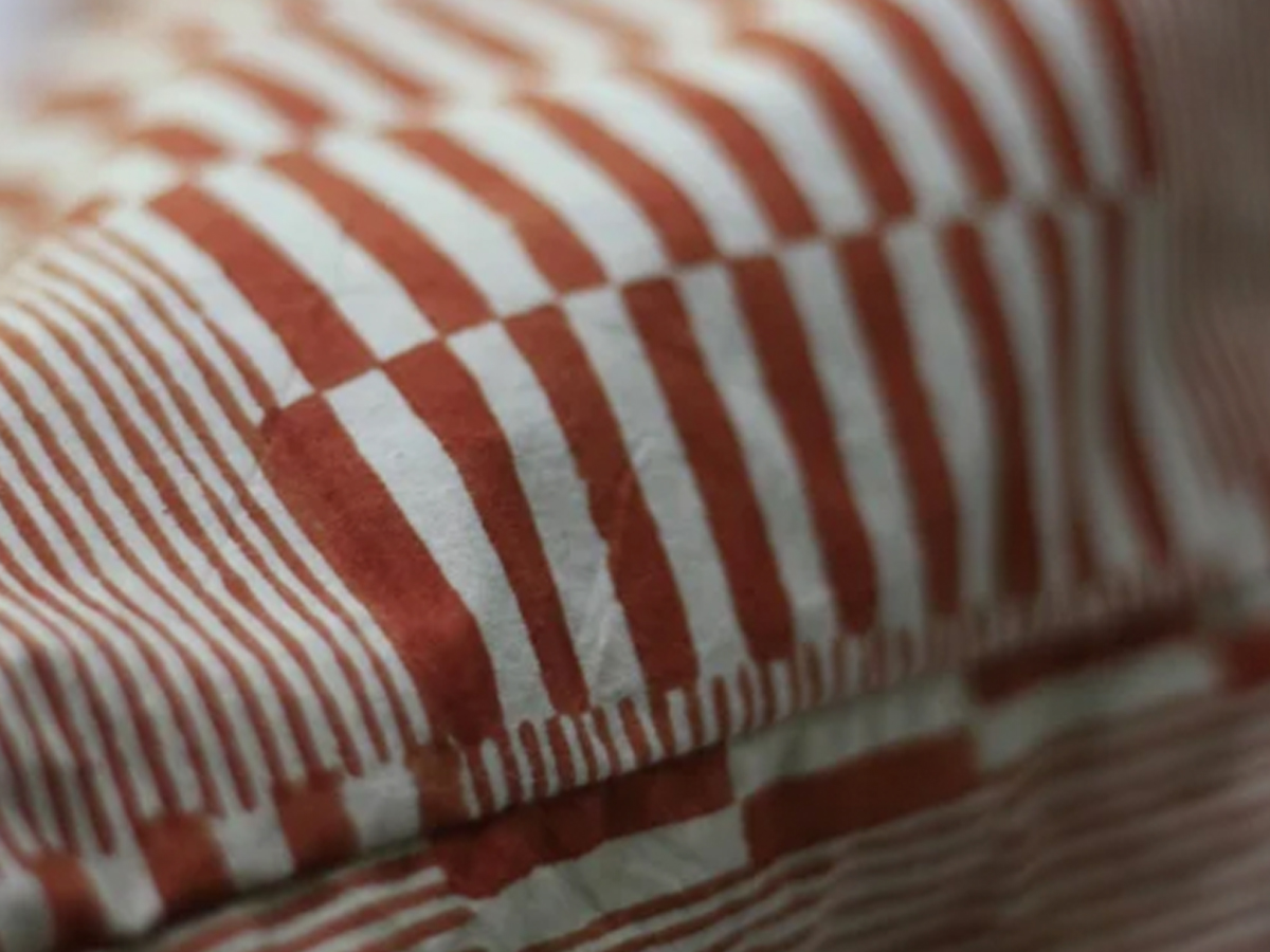 Block printing is a technique that involves transferring designs and patterns onto fabric. A block is covered in dye this is then pressed onto the fabric – this can be then repeated over the entire surface of the fabric to create a pattern repeat.