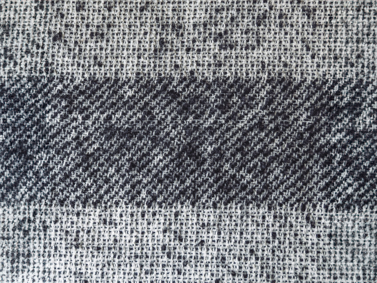 Mohair gives a visual effect of distortion of the surfaces, and the rhythmic patterns both reveal and conceal the woven structure behind the fog mohair effect. The result is a luxurious, structural blanket with a unique, tricot pattern that conveys a feeling of both simplicity and elegance. The cream yarn is natural, undyed lambswool.